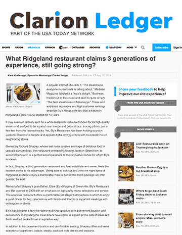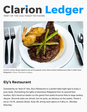 Ely's steak voted one of the best in Mississippi.